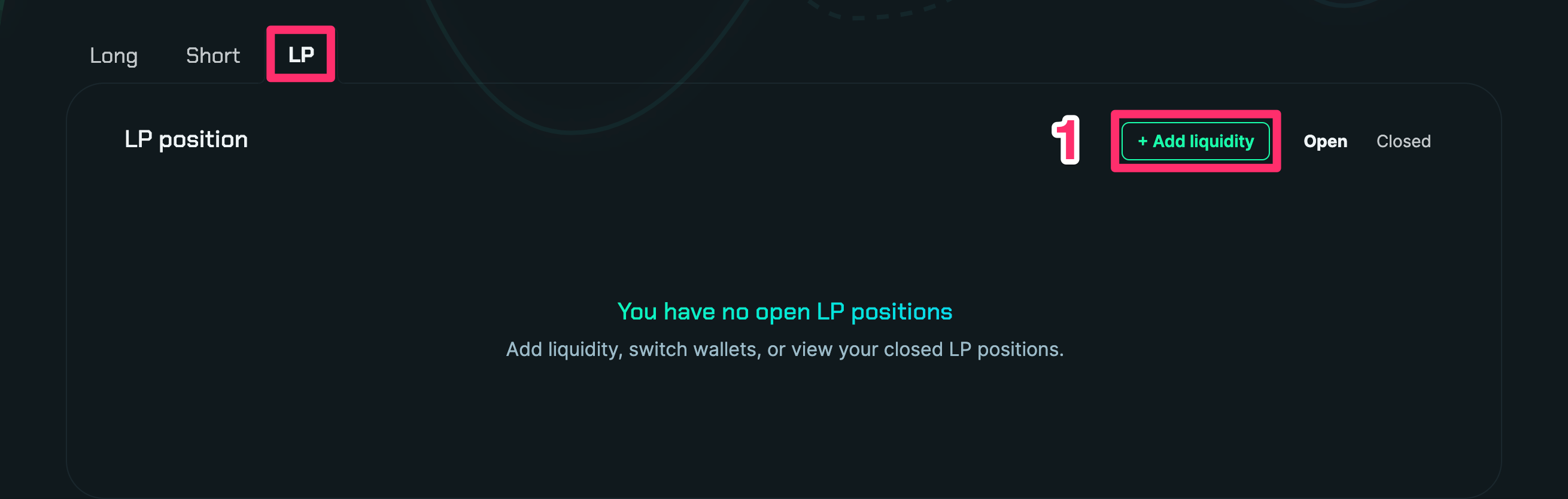 1. Click on the **Add Liquidity** button on the **LP** tab of the page.